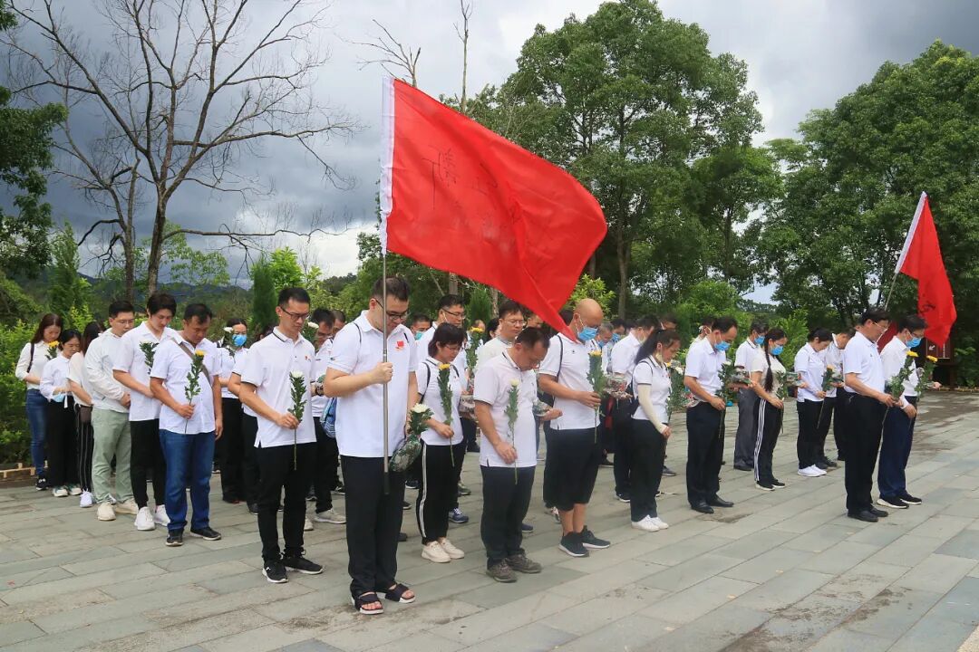 盛夏时节的烈士陵园松柏苍翠、庄严肃穆,巍峨的革命烈士纪念碑显得格外庄严肃穆,倾听松涛阵阵,全体党员干部肃立在革命烈士纪念碑前,举行敬献花圈仪式,追寻先烈足迹,表达对烈士们的无限追思和怀念。